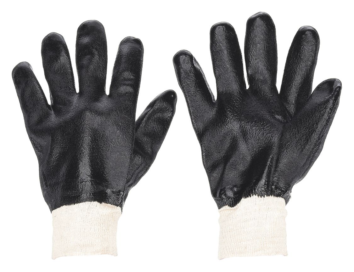 These black/white Condor knit gloves are size small and are made with cotton and polyester. In addition, they have a PVC coating and a straight thumb style. They are full-finger and have a knit cuff.