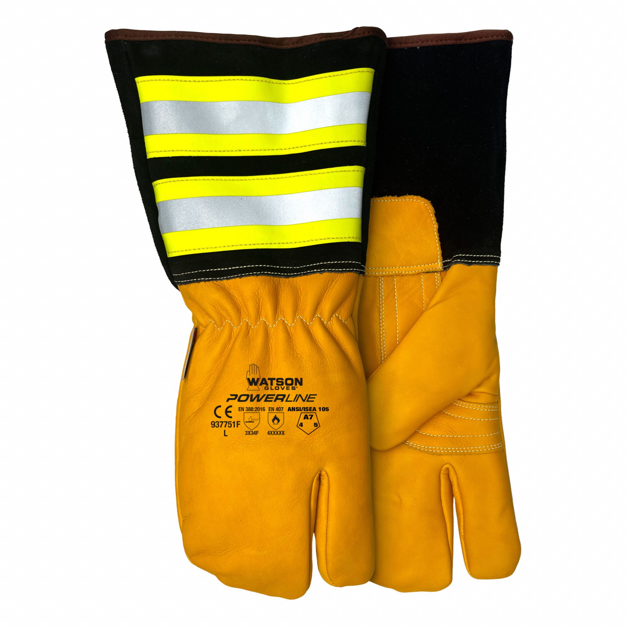 Start your day with the protection of these durable, cowhide, Meat Hook gloves which come with extra wide thumbstraps, 3-inch reflective, 3-finger back, and wing thumbs. These size X-large/10 gloves fit snugly with their elastic cuff and are sold in pairs.